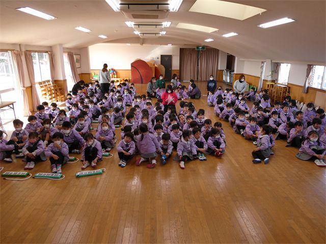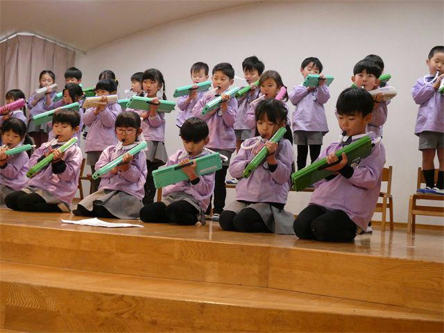 ◎本日(4日)10時から3階ホールでお遊戯会の合奏・歌の予行演習をしました。