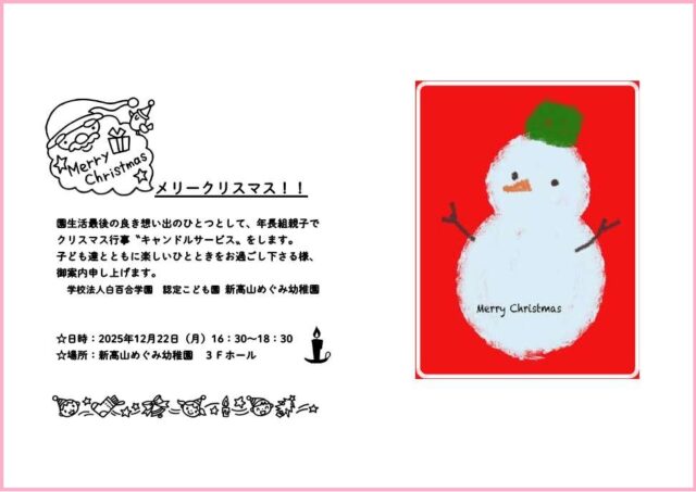 ◎本日(8日)10時から3階ホールで全園児によるクリスマス会をおこないました。