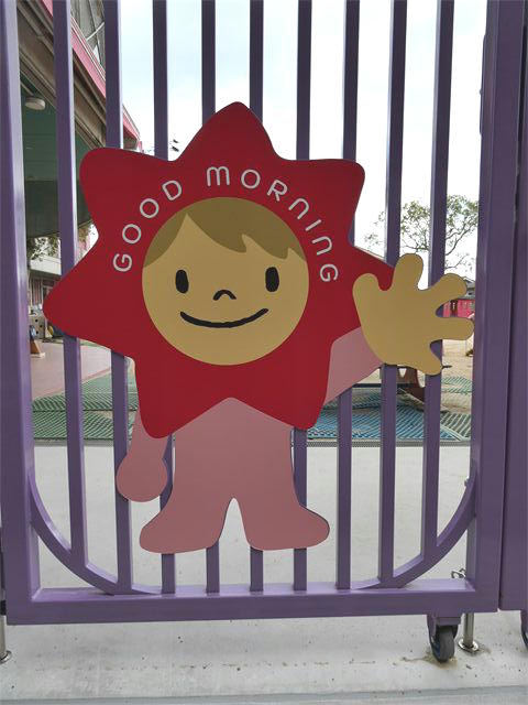 ◎先生よりも早く正門で待っているのは「おはようサン」です。太陽(サン)に見えるかな?