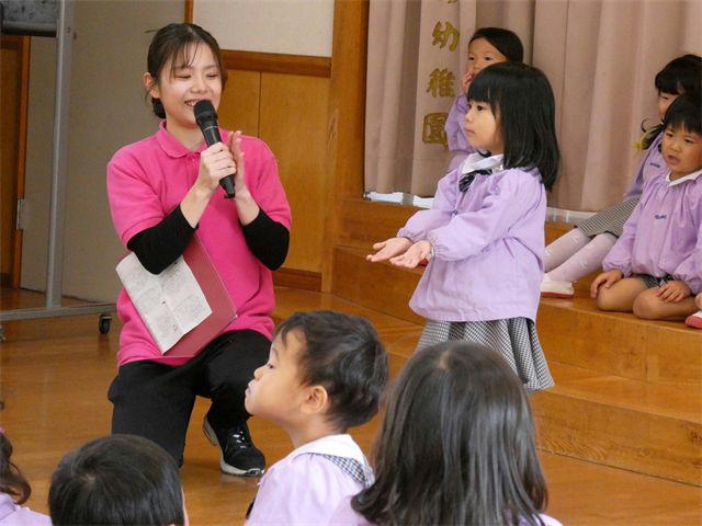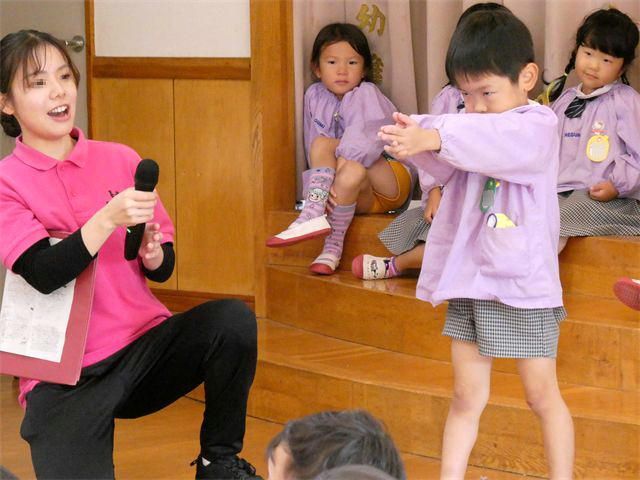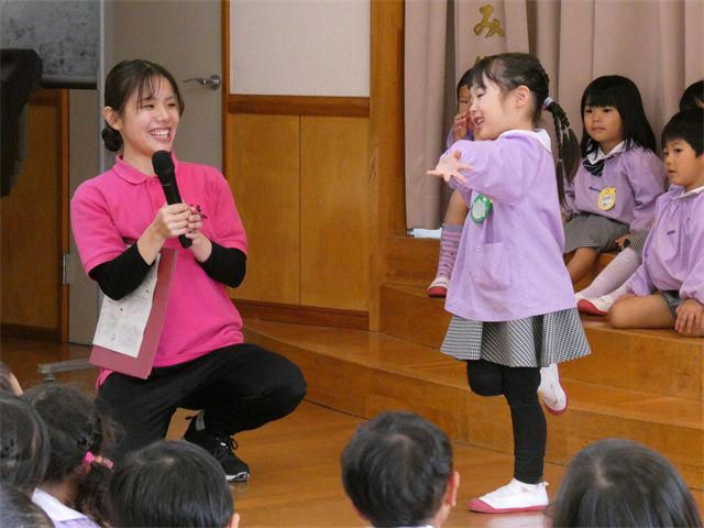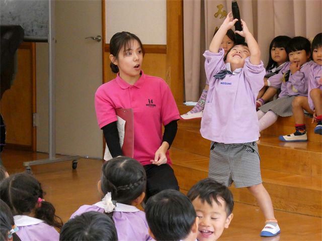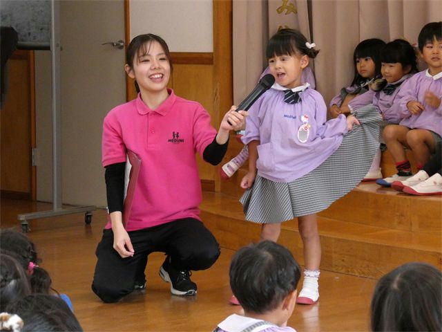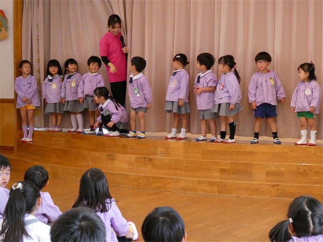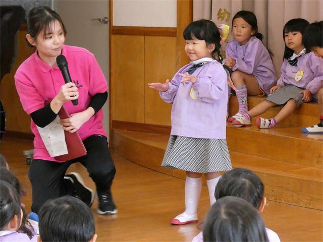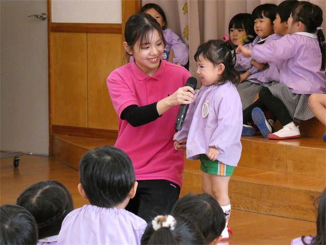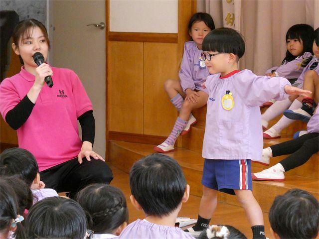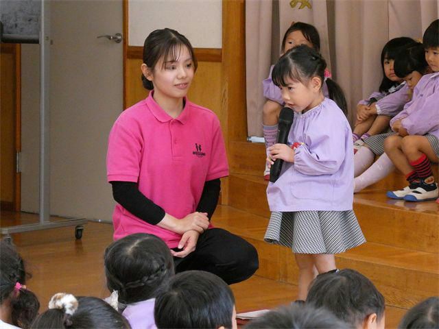 ◎1人ずつマイクを持って、名前を乗ってから「大きくなったら何になりたいですか?」をみんなの前で披露します。