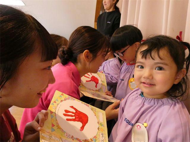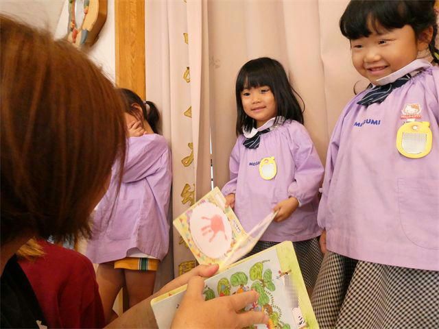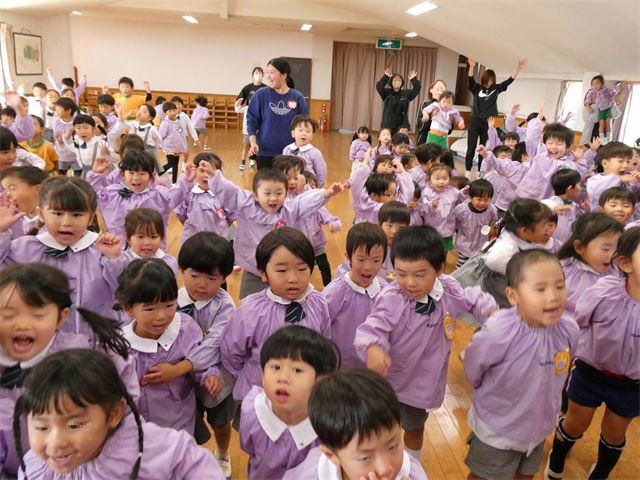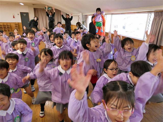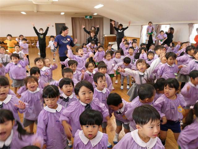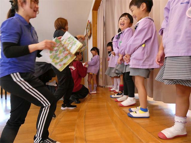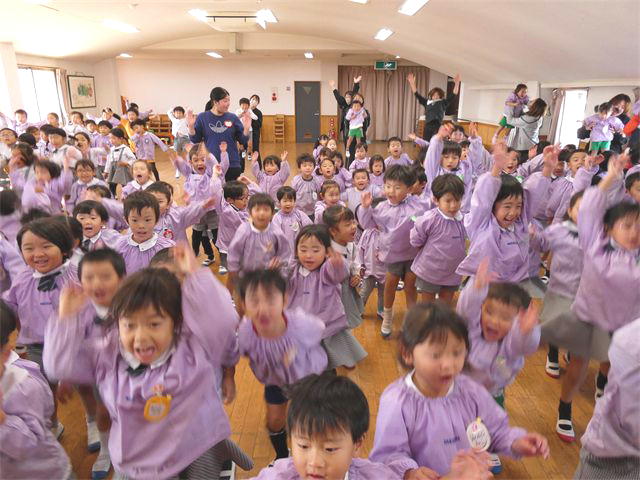 ◎ピアノの伴奏に合わせて、みんなで「♪ たんたんたんたん誕生日! ♪ ○○ちゃんの誕生日! やあ!」と歌い、かつジャンプして10月生まれのみんなを祝いました。