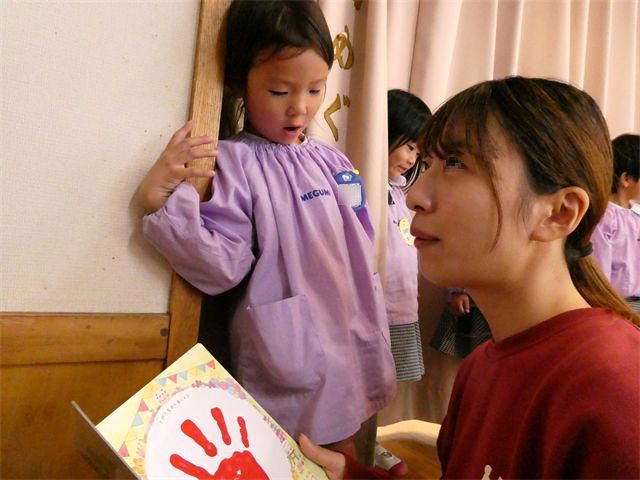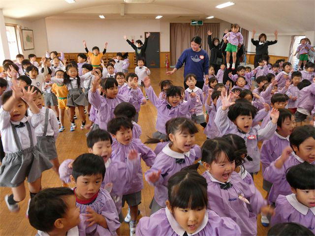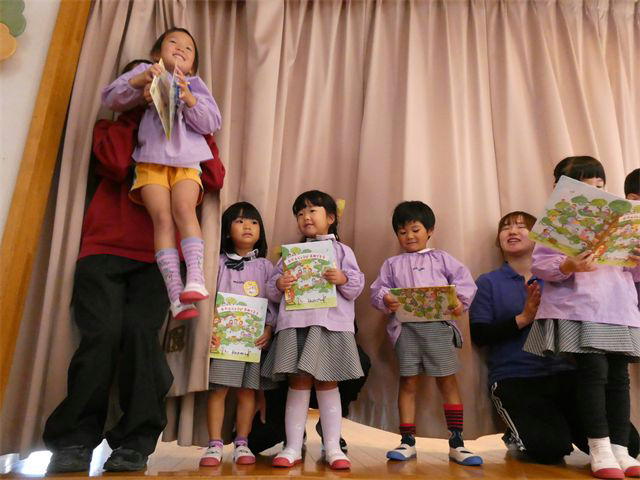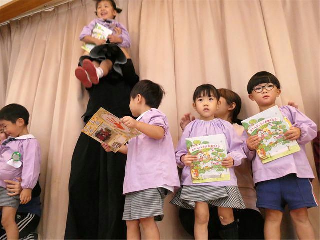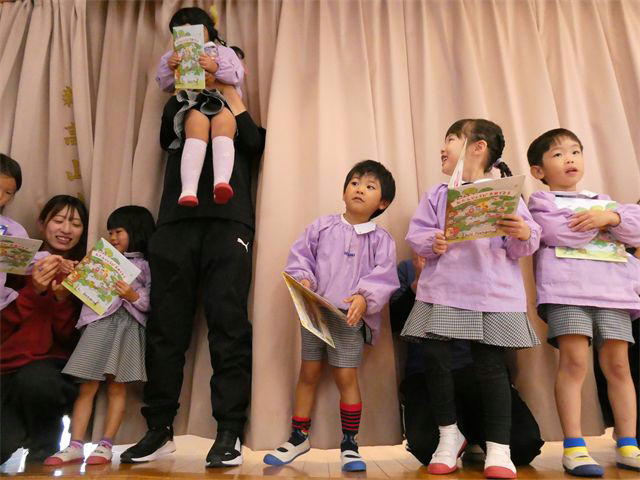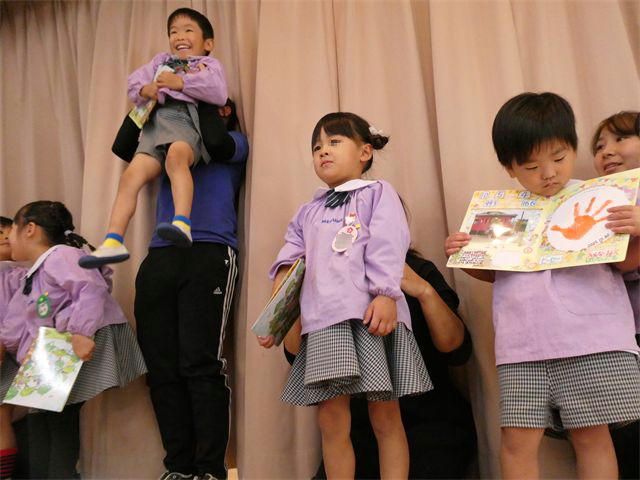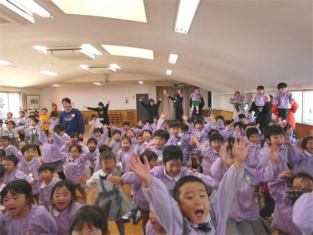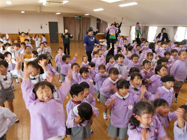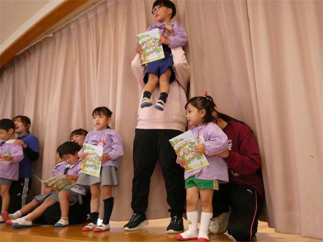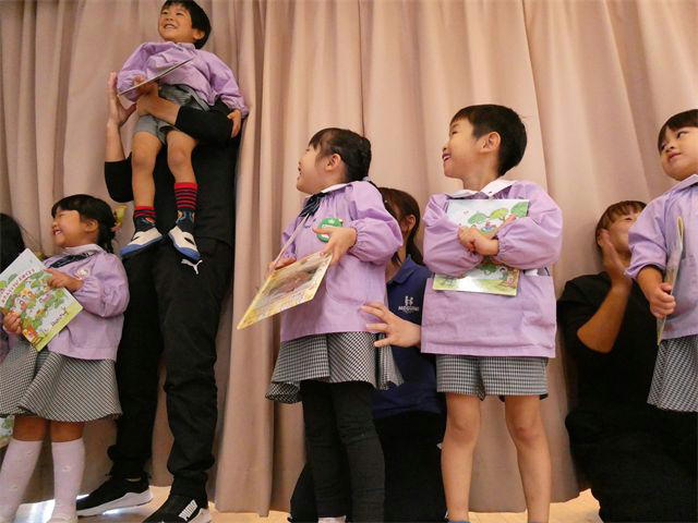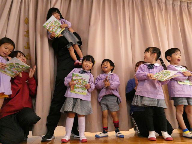 ◎檀上の高い高いに呼応するがごとく、今回もいちご組の子どもたちも「たかい~!」「たかい~!」と舞いあがります。