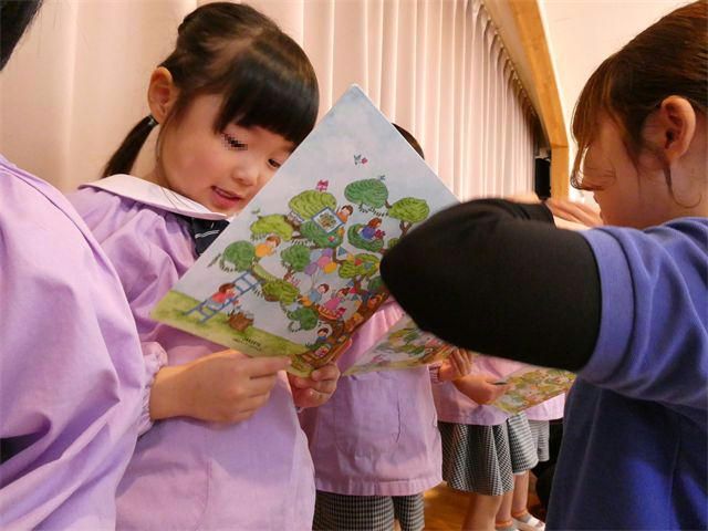 ◎小学校に行かず、新高山めぐみ幼稚園にやって来たまる子ちゃん。ランドセルは新品?