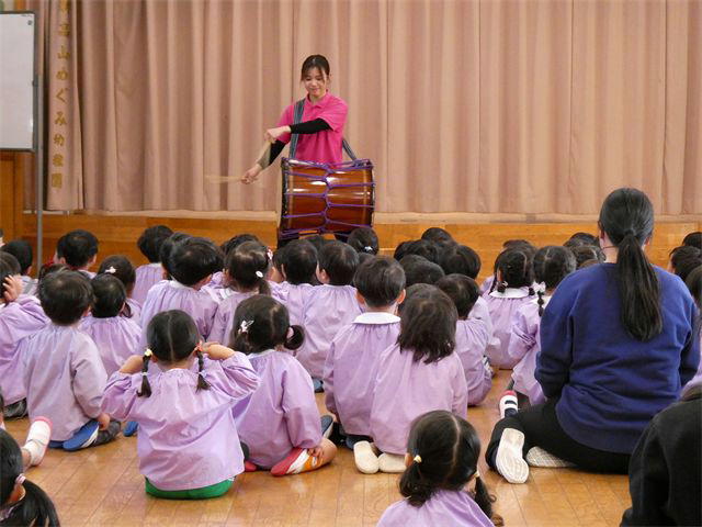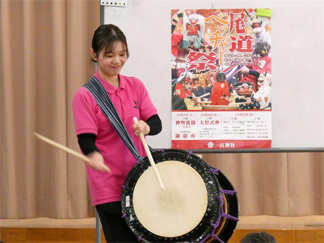◎ベッチャー祭りで太鼓を叩く先生がお誕生日祝いに披露してくれました。