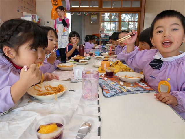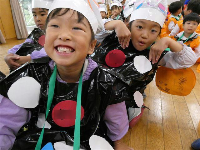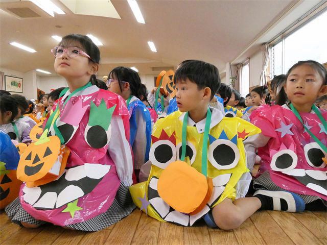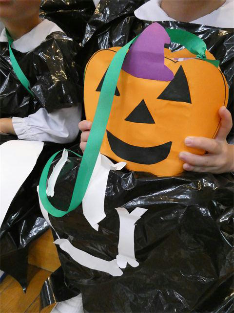 ◎「ハロウィンは収穫を祝います。みんなもサツマイモを穫ったよね」