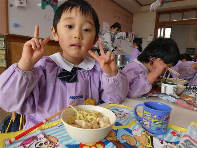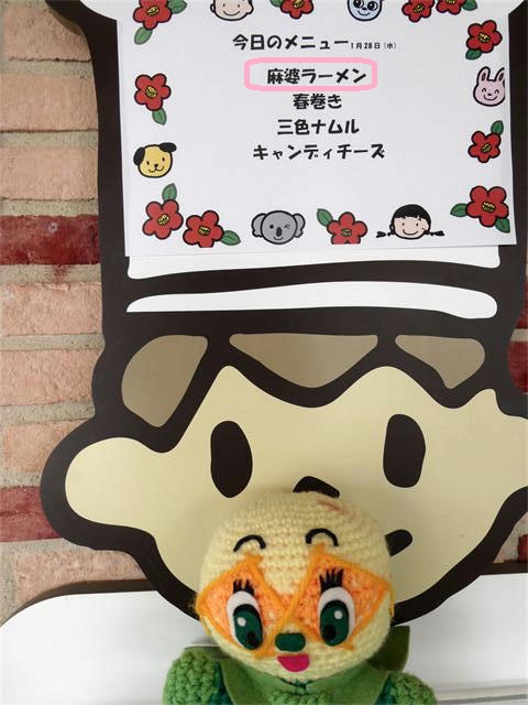 ◎きました!数日前から園長と話していた「麻婆ラーメン」の給食。