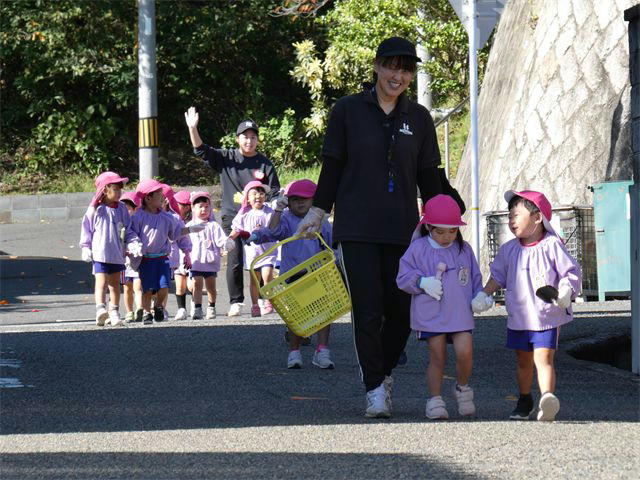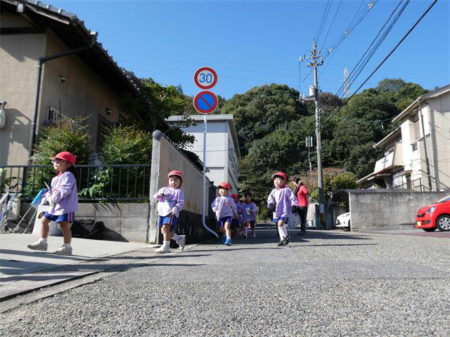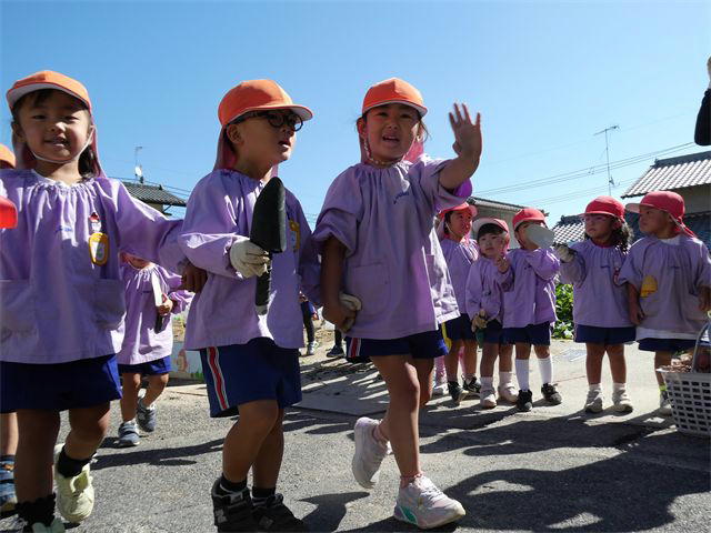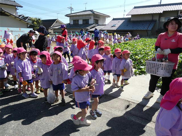 ◎年少組→いちご組→年中組→年長組の順で時間をおいて農園にやって来ました。