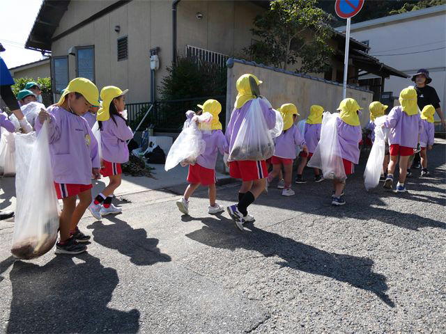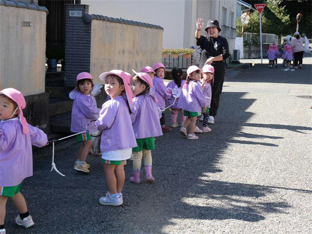 ◎式が終わると、めぐみキッチンから火事が発生したという想定で、非常ベルが鳴る中、避難訓練をしました。
