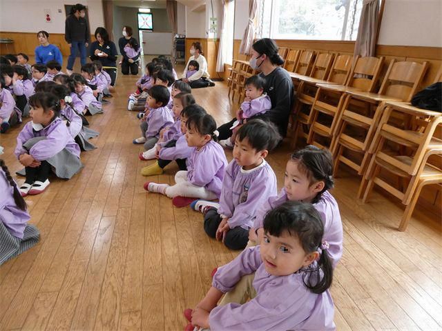 ◎本日(9日)10時15分より、3階ホールにて年長組園児といちご組・年少・年中組園児とのお別れ会をおこないました。